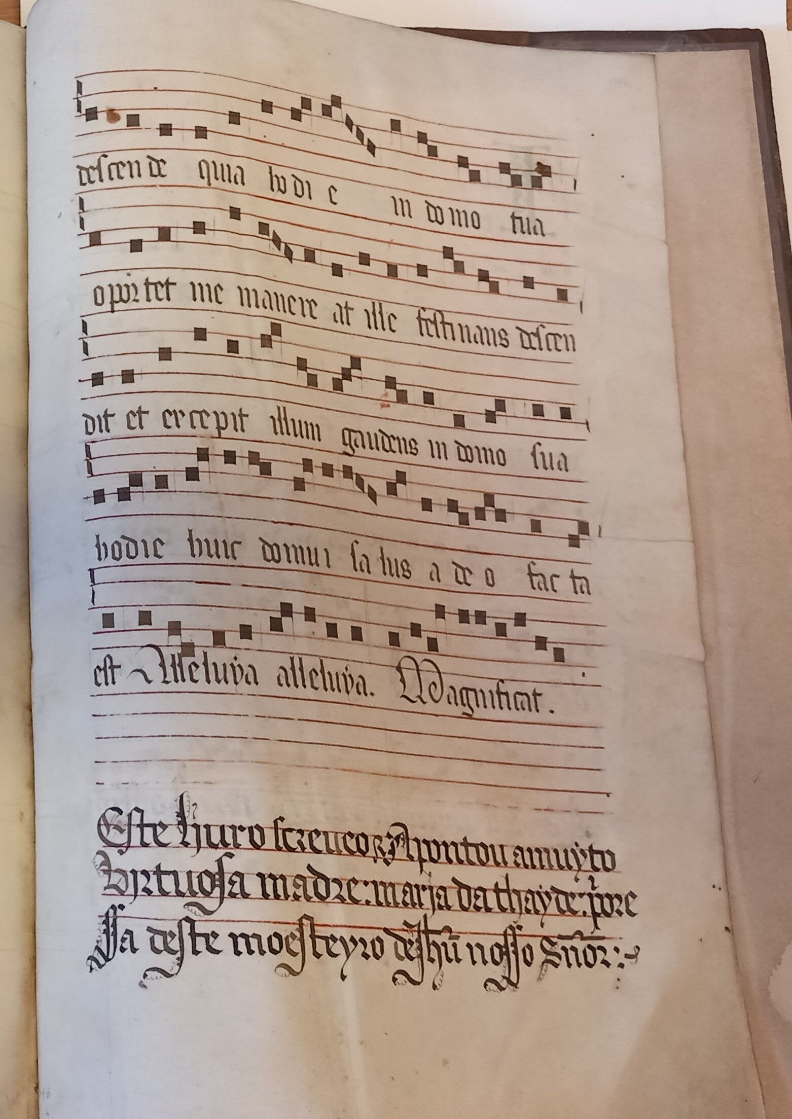 Maria de Ataíde foi também responsável pela notação musical dos livros litúrgicos que escreveu para o convento, facto que deixou registado nos colofões com que finalizou alguns destes volumes (Cardoso, 2019: 101-106). Apesar destas notas finais nunca identificarem Maria de Ataíde como iluminadora, é possível que a freira também tenha desempenhado esta tarefa, uma vez que alguns dos seus livros são iluminados e, segundo a crónica da fundação do convento, o primeiro grupo de freiras aveirenses terá aprendido a iluminar livros com um frade do Convento de Nossa Senhora da Misericórdia (Cardoso, 2019: 191-197).
